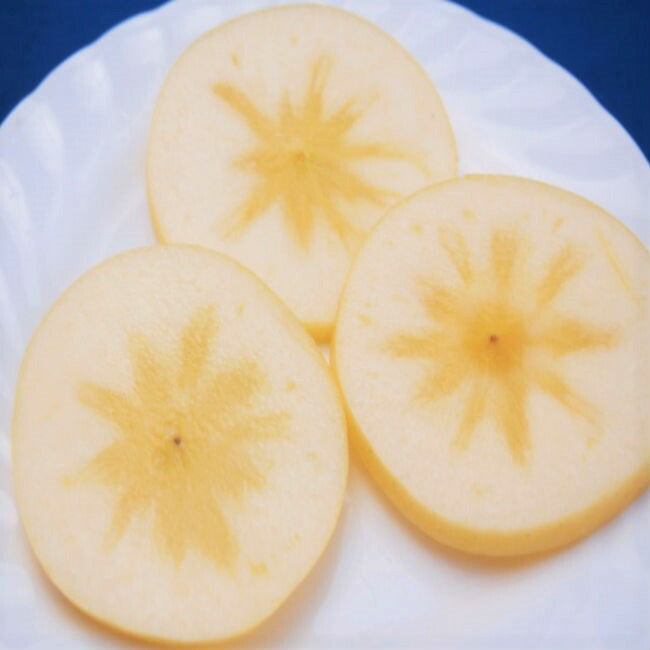 (蜜が入らないモノもありますが味に変わりはありません) りんごの蜜の正体は「ソルビート」という糖質アルコールの一種です。 ただし、ソルビート自体はショ糖や果糖の5〜6割程度の甘さしかありませんから、その部分だけを食べても あまり甘くは感じません。 |