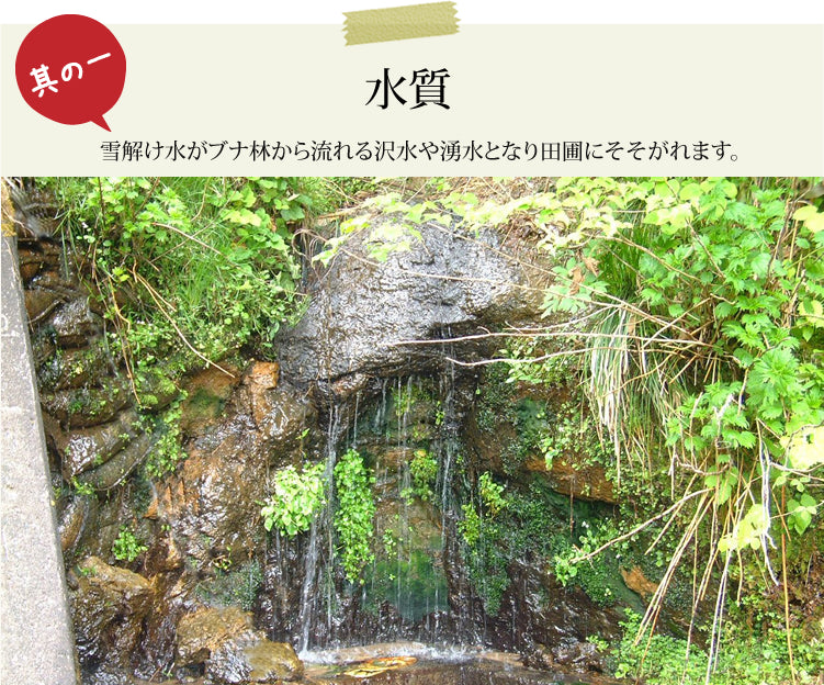 人里離れた山間部の棚田でブナ林から流れ出る湧水を使い、ほとんど無農薬で