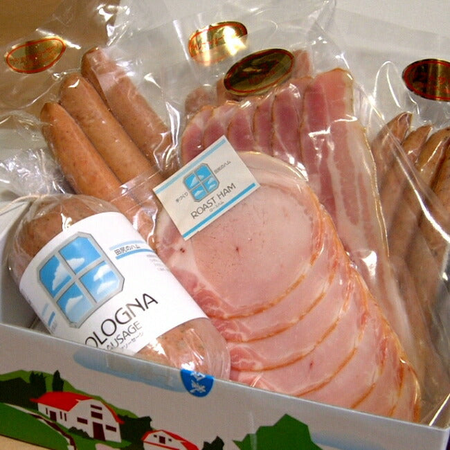 | 内容 | ロースハム100g、ベーコン100g、ボロニアソーセージ(ブロック)400g、フランクフルトソーセージ約200g、 ウィンナーソーセージ約150g、計5種類 |